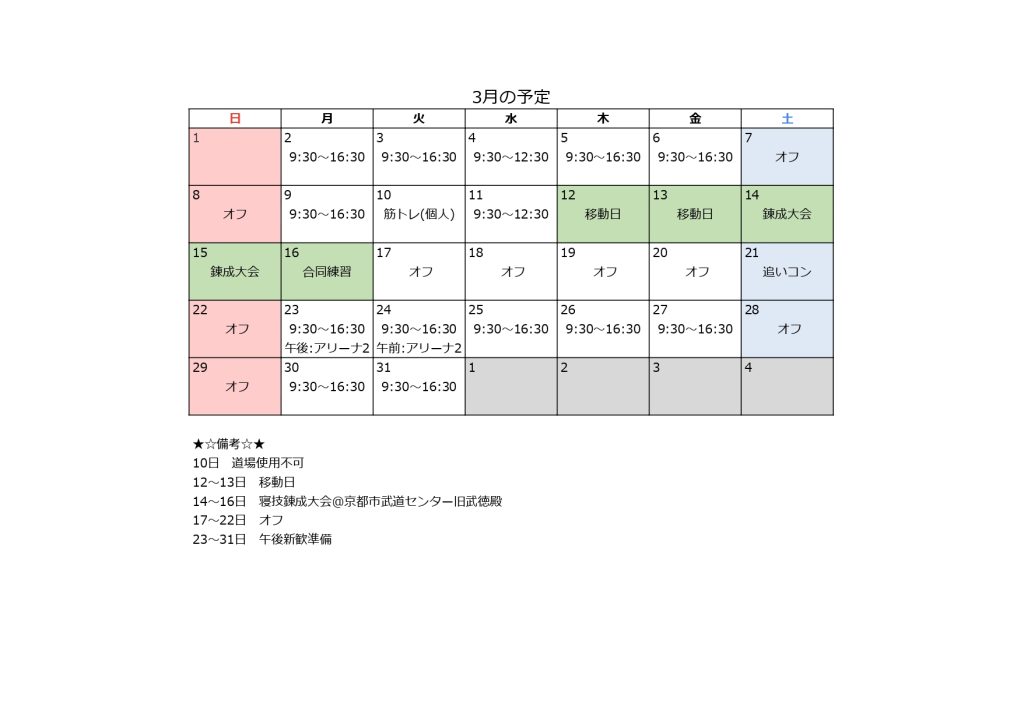 月間予定